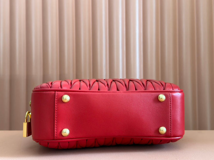 ARCADIE MATELASSÉ BAG 24 IN CERISE RED CALFSKIN GOLD HARDWARE