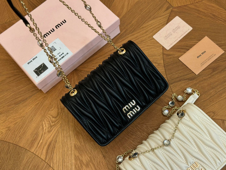 CRYSTAL CLOQUÉ 20 NAPPA BLACK LEATHER BAG