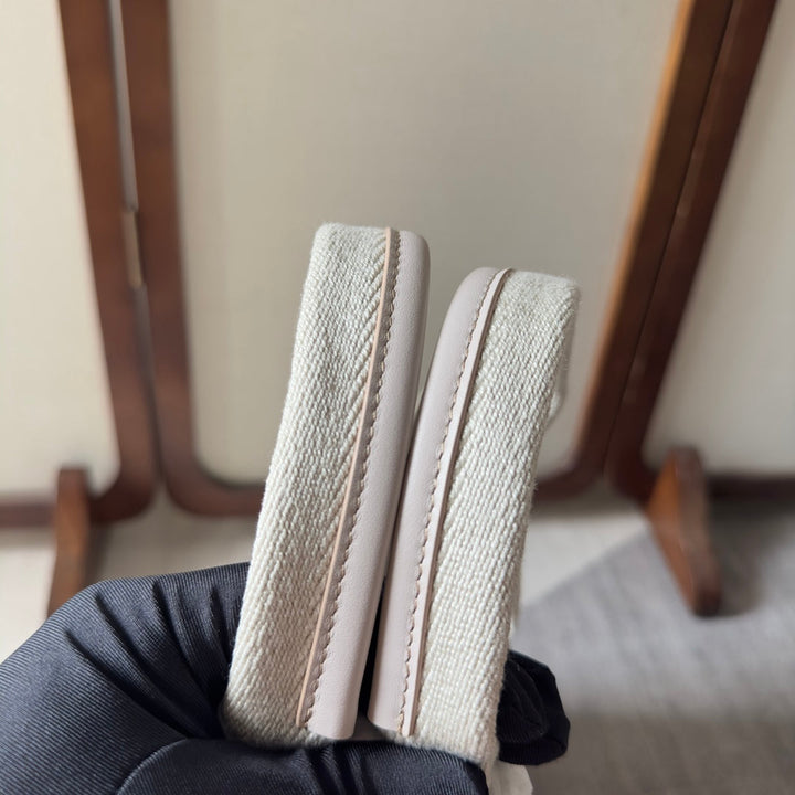 LAGRE WOODY TOTE BAG 45 IN BEIGE LINEN CANVAS WEBBING LOGO EMBROIDER COTTON WHITE CALFSKIN