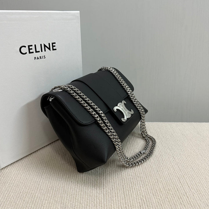 MEDIUM VICTOIRE BAG 25 IN BLACK SUPPLE CALFSKIN SILVER HARDWARE