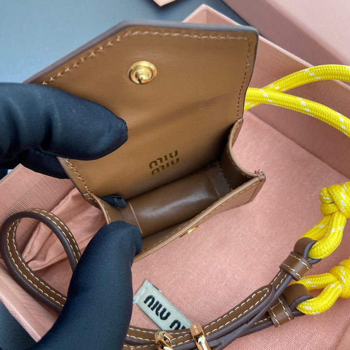 MICRO BAG 7 IN TAWNY BROWN SMOOTH LAMBSKIN YELLOW STRAP