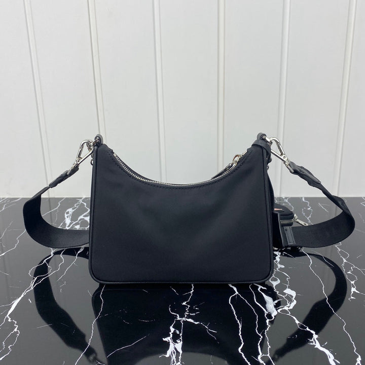 PRA HOBO 22 BAG IN BLACK RE-NYLON WITH RED LOGO