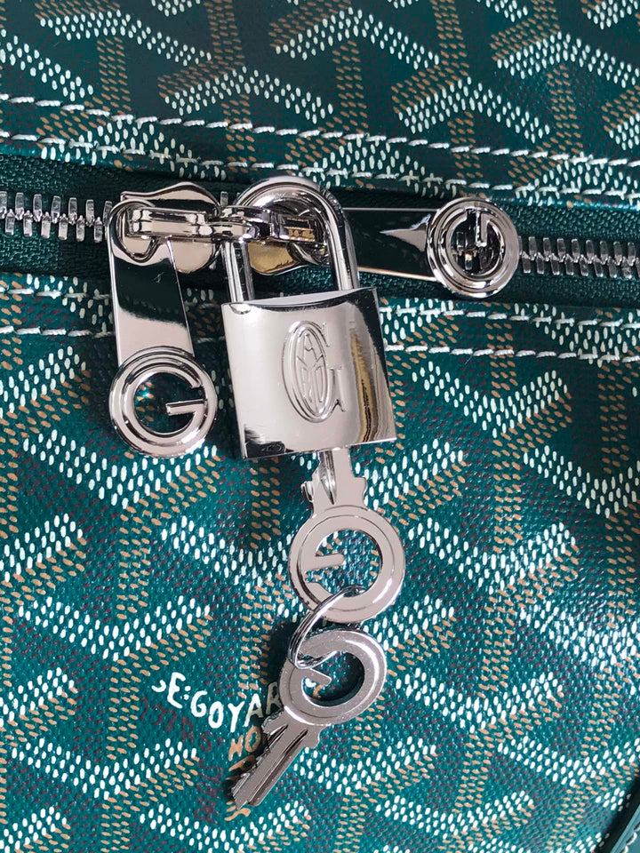 BOSTON 50 BAG IN GREEN GOYARDINE CANVAS AND CALFSKIN TRIM