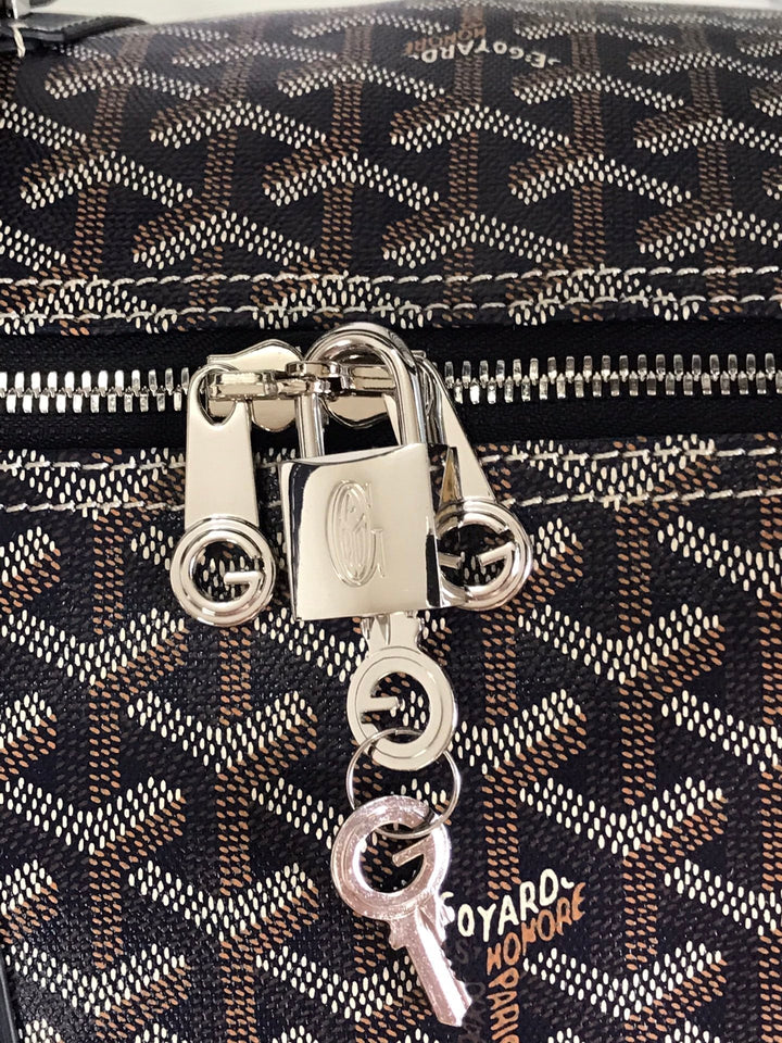 ?Material: Goyardine canvas and calfskin trim