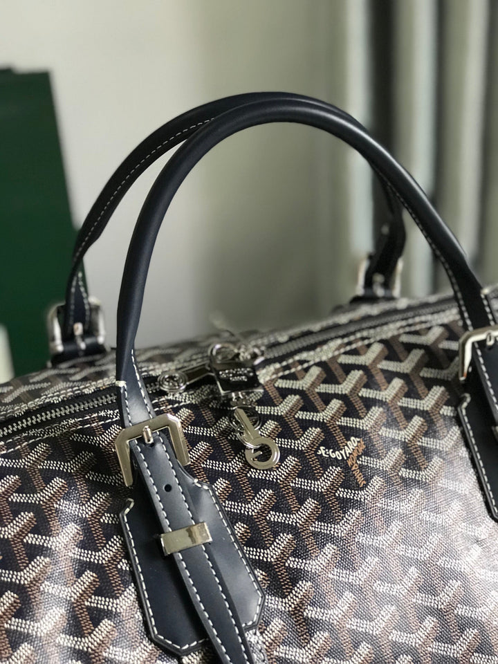 BOSTON 50 BAG IN NAVY BLUE GOYARDINE CANVAS AND CALFSKIN TRIM