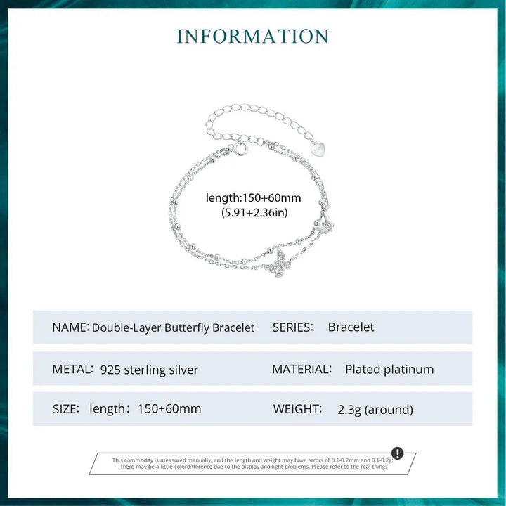 Double-Layer Little Butterfly Bracelet, with gemstone-studded wings that shimmer with delicate radiance. It dances gracefully, adding a touch of elegance to your wrist subtlely.