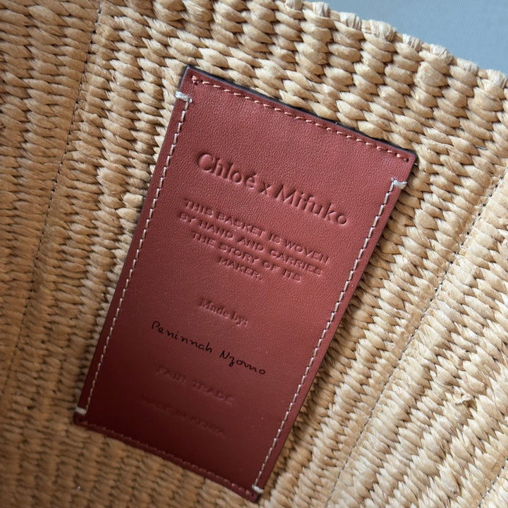 LAGRE WOODY TOTE BAG 48 IN NATURAL FIBERS BLACK WEBBING LOGO EMBROIDER BROWN CALFSKIN