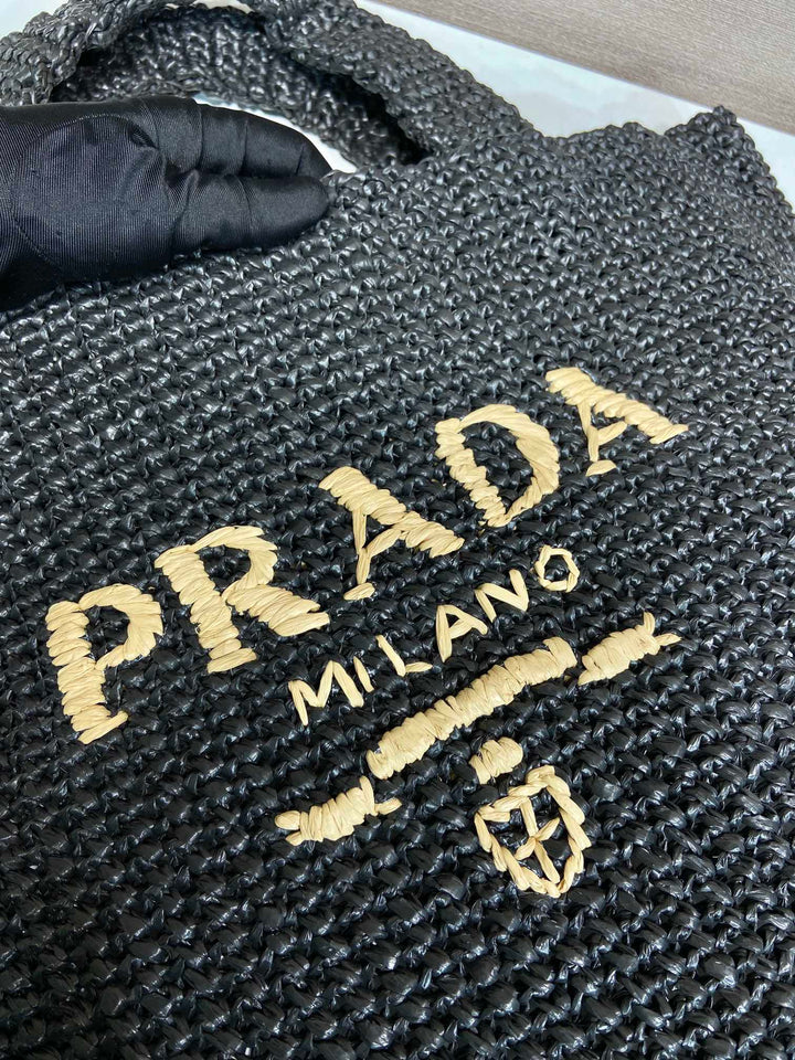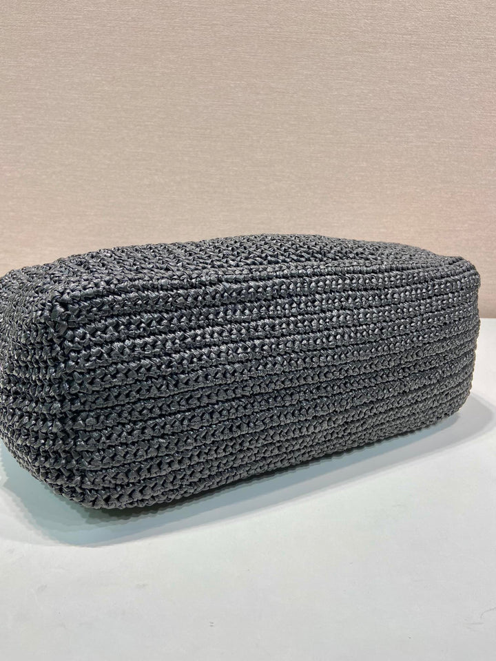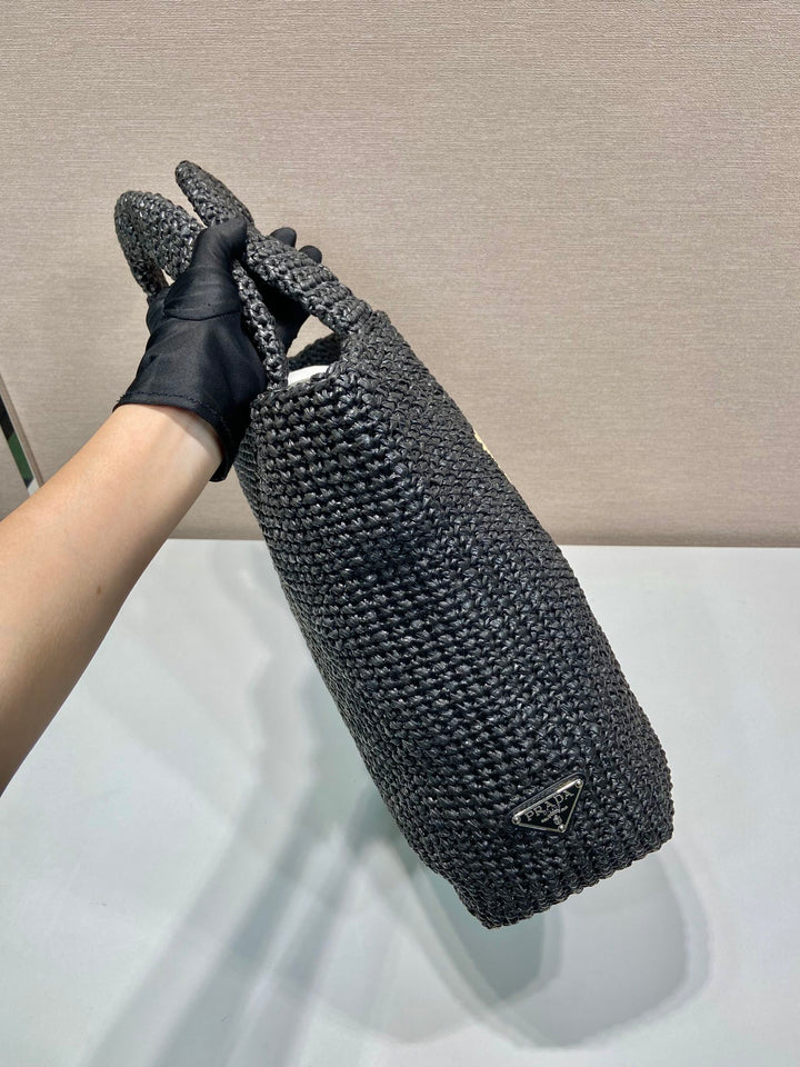 LARGE CROCHET TOTE BAG 47 IN BLACK MIX YELLOW RAFFIA