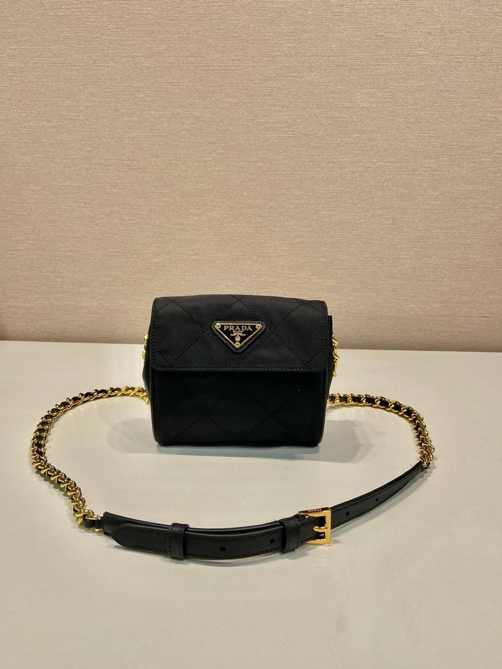 MINI QUILTED FLAP BAG 14 IN BLACK RE-NYLON FABRIC GOLD CHAIN