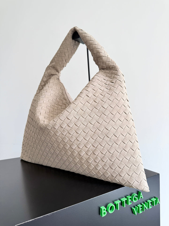 BOTTEGA VENETA 25S HOP BAG 53 IN SOFT TAUPE SUEDE GOLD HARDWARE