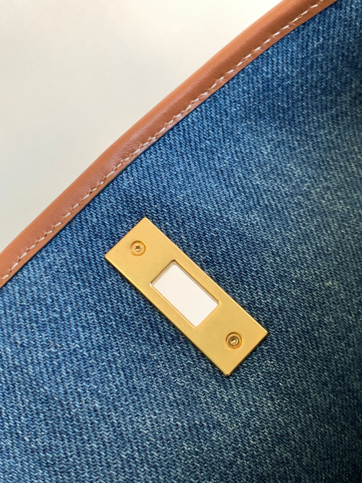 BUCKET 25 PRINTED DENIM BAG NAVY BLUE