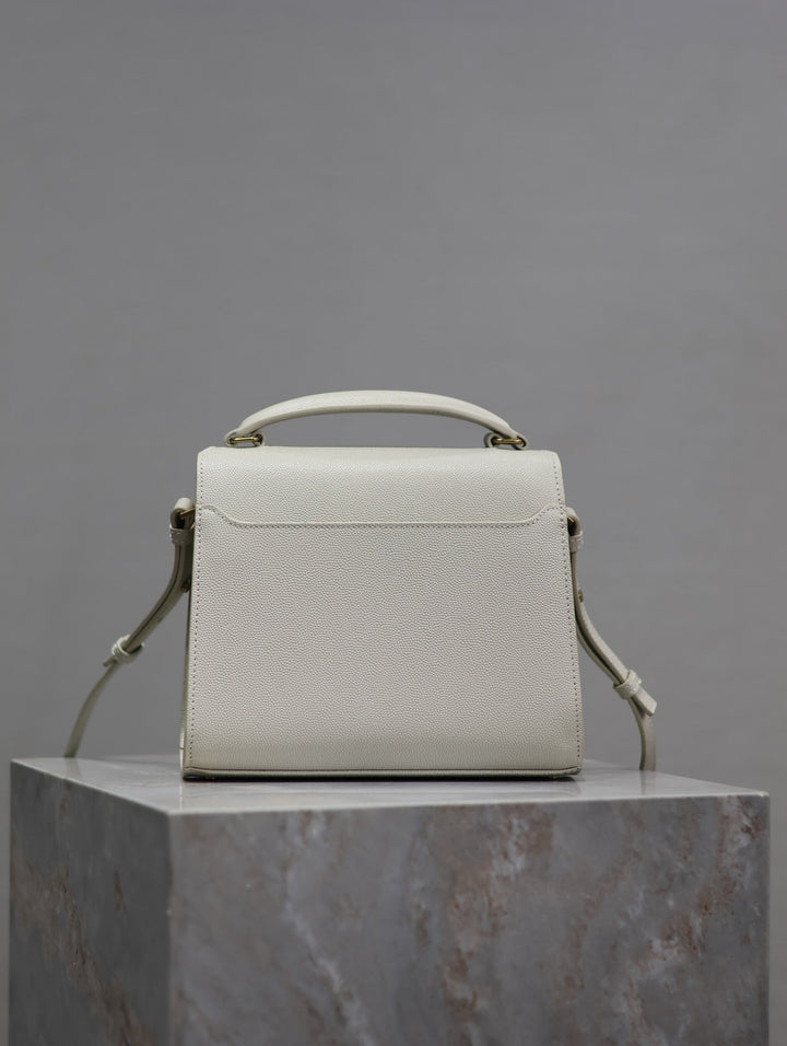 CASSANDRA MINI TOP HANDLE BAG 20 IN WHITE CALFSKIN GOLD HARDWARE
