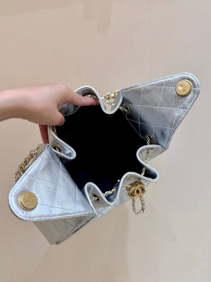 CC 25 HANDBAG IN SILVER-TONE 30 GRAINED CALFSKIN GOLD HARDWARE