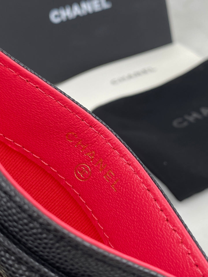 CC CARD HOLDER 19.5 BLACK GRAINED CALFSKIN GOLD ICON