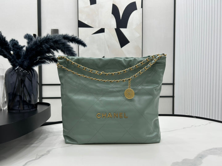 CC LARGE 42 HANDBAG IN GREEN SAGE CALFSKIN GOLD HARDWARE