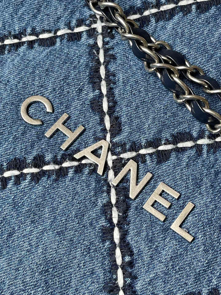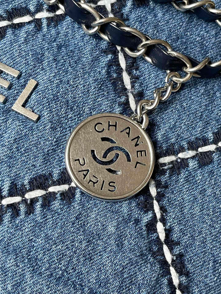 CC MEDIUM 37 CROSSBODY BAG IN BLUE DENIM WITH CHAIN