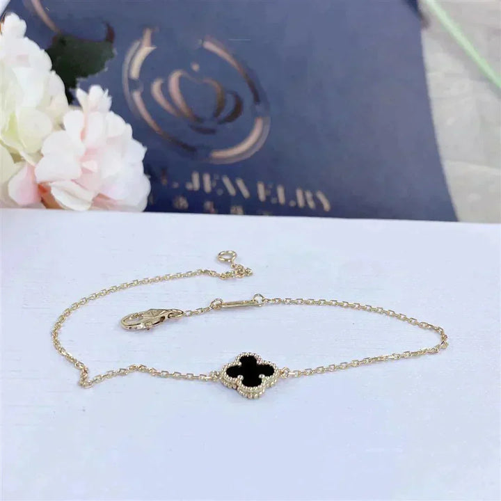 ˇFashion StreetˇCLOVER ONYX SINGLE FLOWER BRACELET