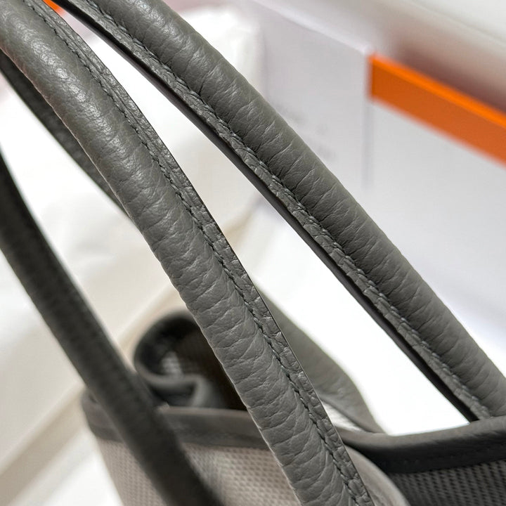 GARDEN PARTY 23CM IN WHITE TOILETS COTTON CANVAS AND GREY CALFSKIN