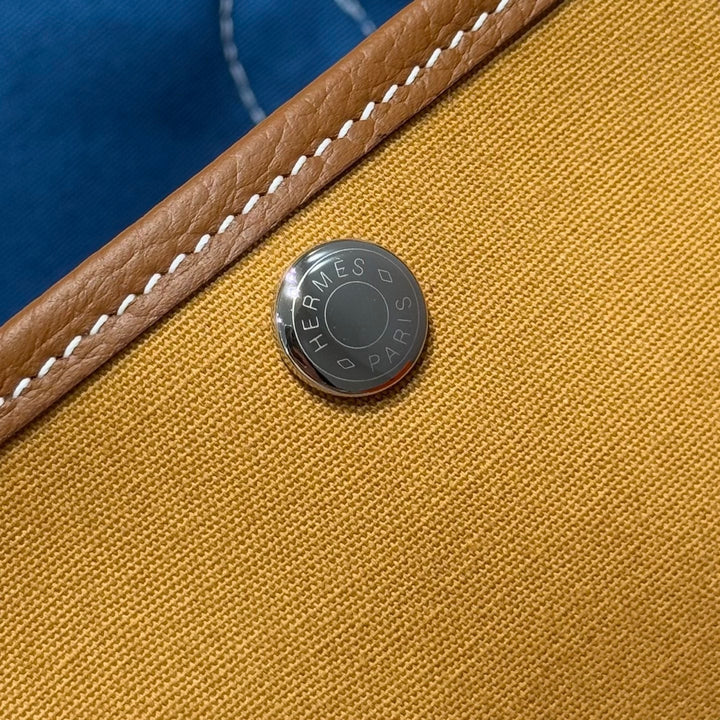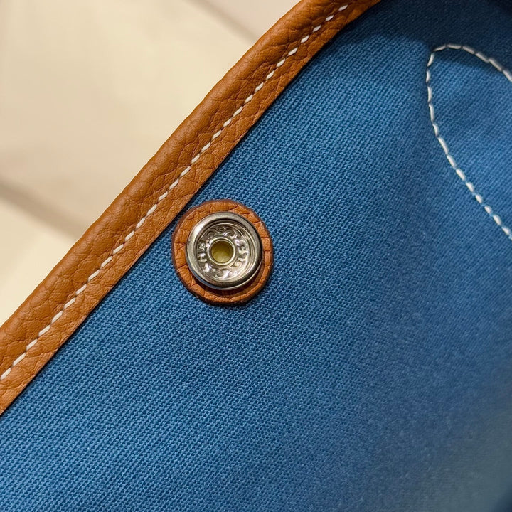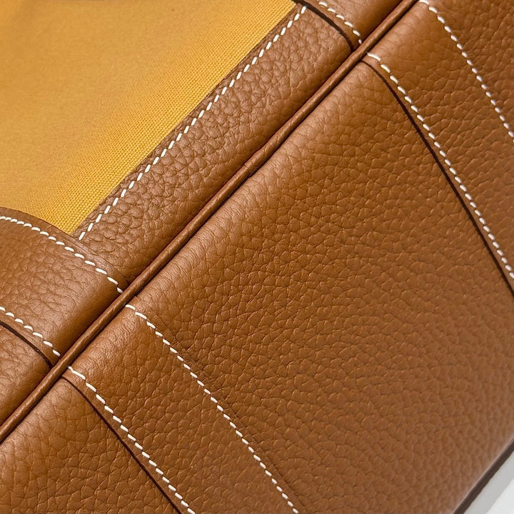 GARDEN PARTY 30CM IN DUNE MAGNOLIA TOILETS COTTON CANVAS AND BROWN CALFSKIN