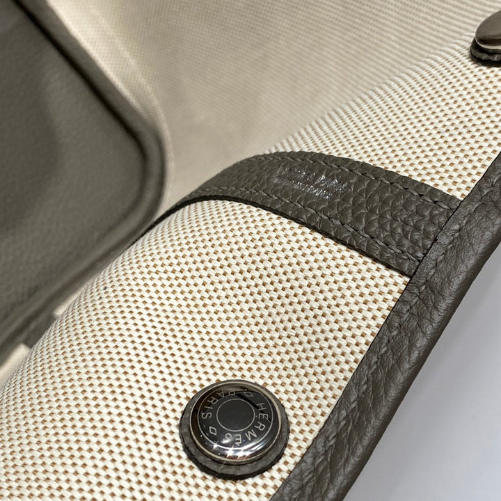 GARDEN PARTY 36 IN IVORY YELLOW BLUE TOILE H CANVAS ETOUPE CALFSKIN EQUESTRIAN HARNESS PRINT