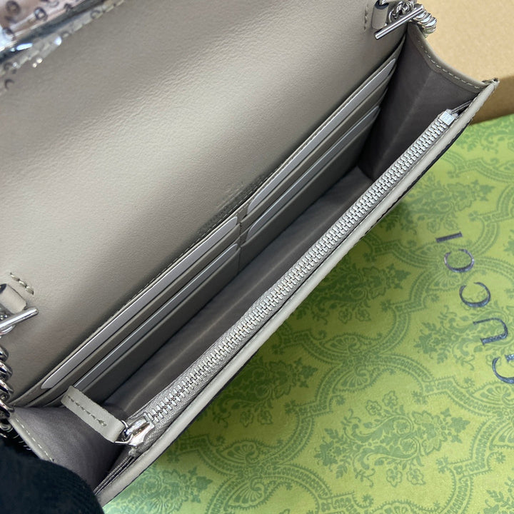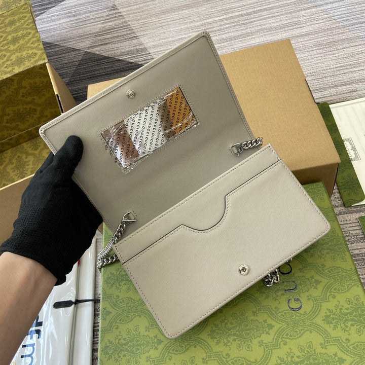 GG MARMONT 20 MINI CHAIN BAG IN WHITE CALFSKIN