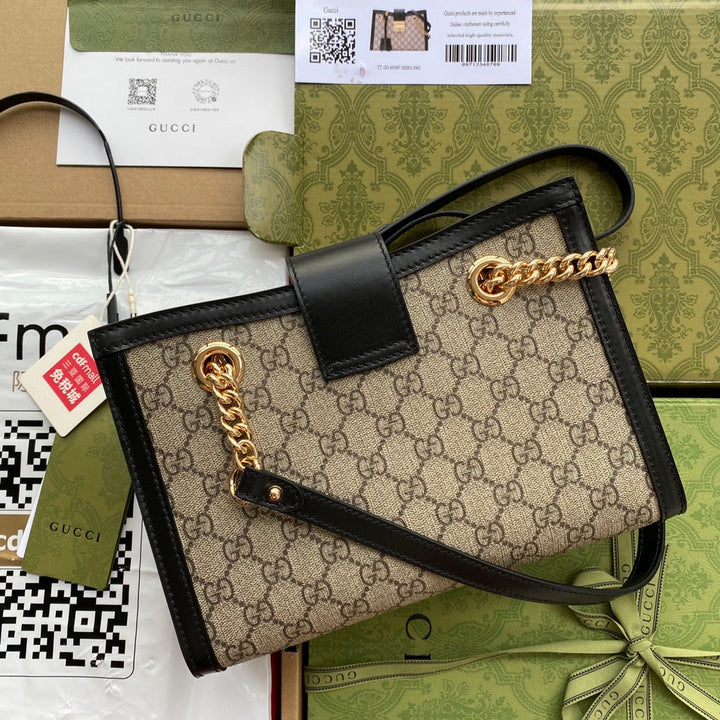 GG PADLOCK MEDIUM 26 SHOULDER BAG BEIGE CANVAS AND BLACK CALFSKIN