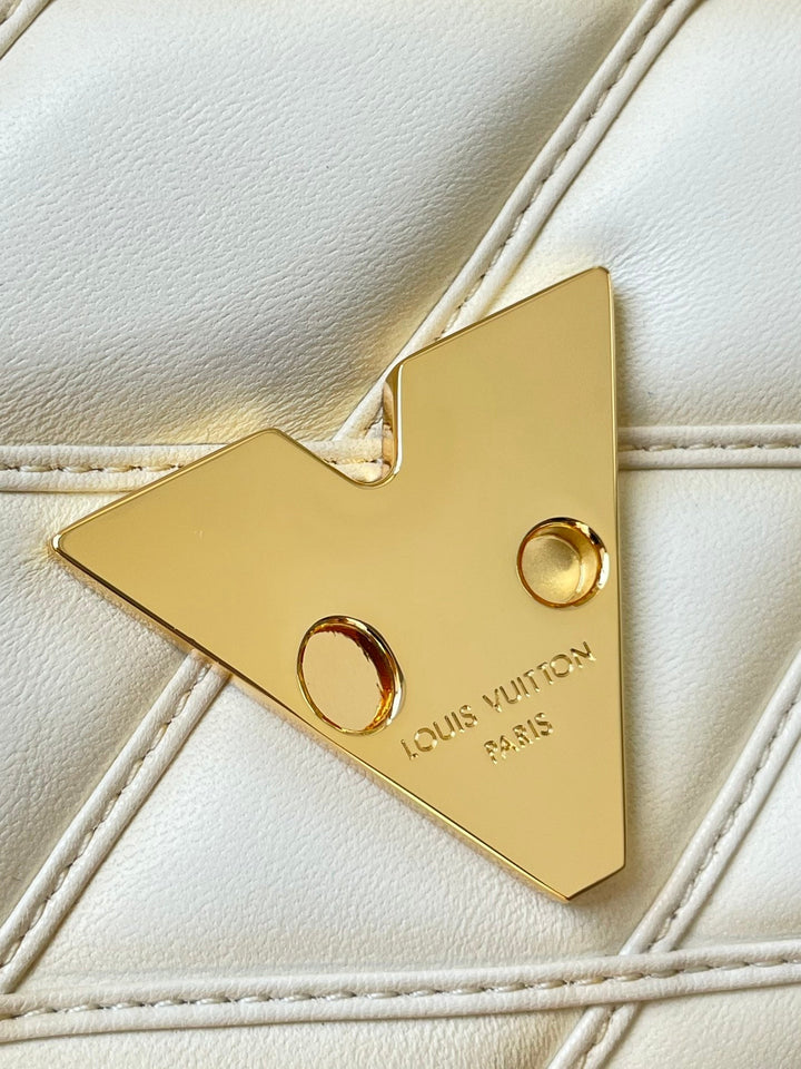 GO-14 PM 20 IN CREAM QUILTED LAMBSKIN GOLD HARDWARE