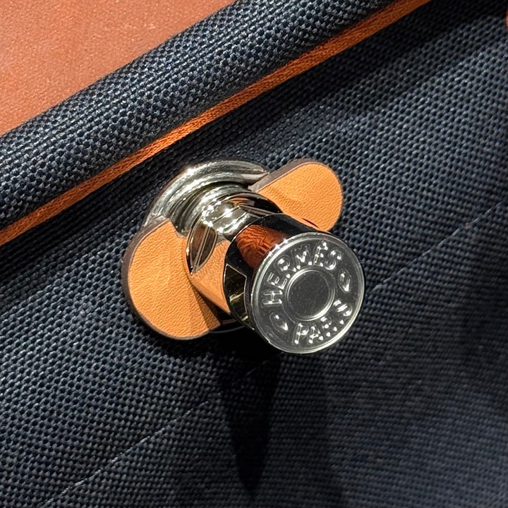 HERMES 25S MINI HERBAG 20 IN NAVY BLUE CANVAS SILVER HARDWARE