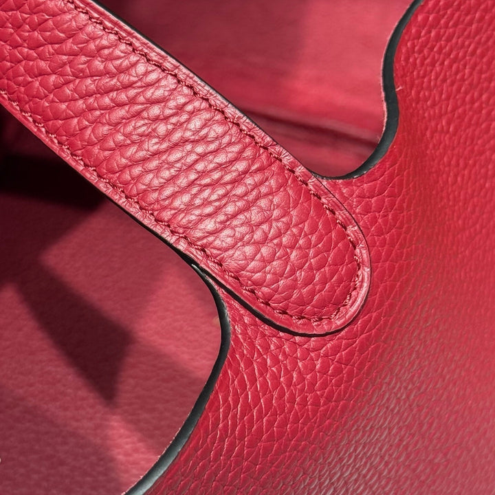 HERMES 25S PICOTIN LOCK 22 IN ROSSO ANCORA RED CALFSKIN GOLD HARDWARE