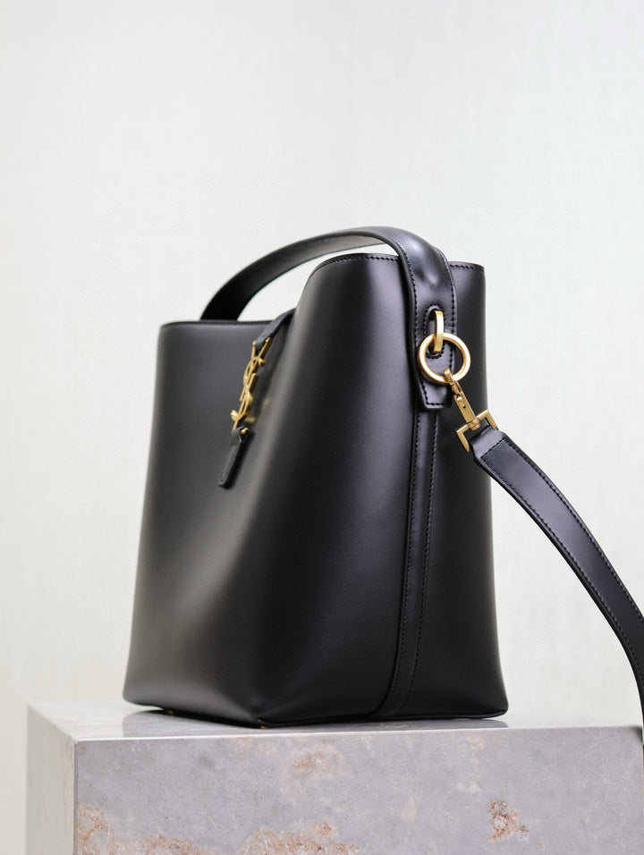 LE 37 MEDIUM BUCKET BAG 26 IN BLACK CALFSKIN GOLD HARDWARE