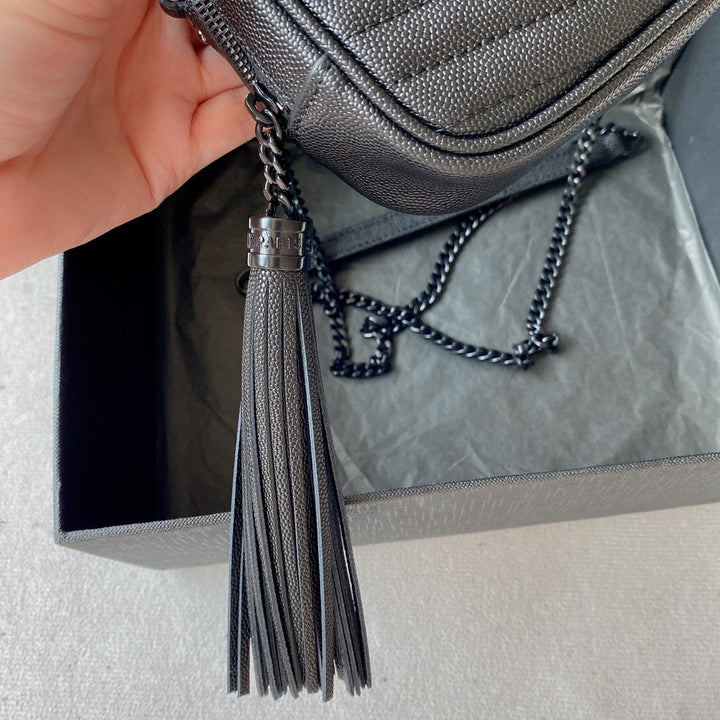 LOU MINI CAMERA BAG 19 IN BLACK CAVIAR PATTERN CALFSKIN BLACK HARDWARE