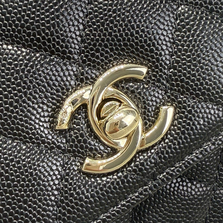 MINI FLAP BAG 14 IN BLACK GRAINED CALFSKIN GOLD HARDWARE