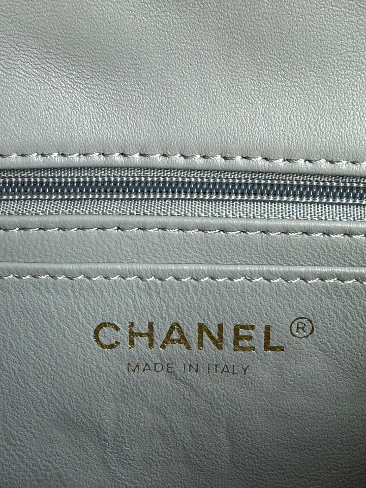 MINI FLAP BAG 20 IN LIGHT GRAY GLOSSY CALFSKIN GOLD HARDWARE