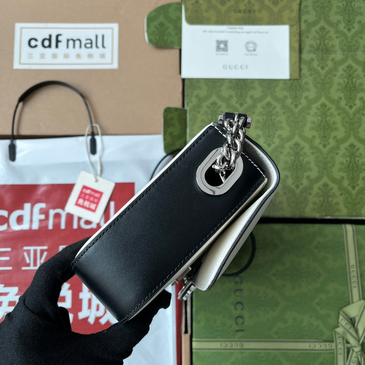 PETITE SMALL SHOULDER BAG 27 IN BLACK MIX WHITE CALFSKIN