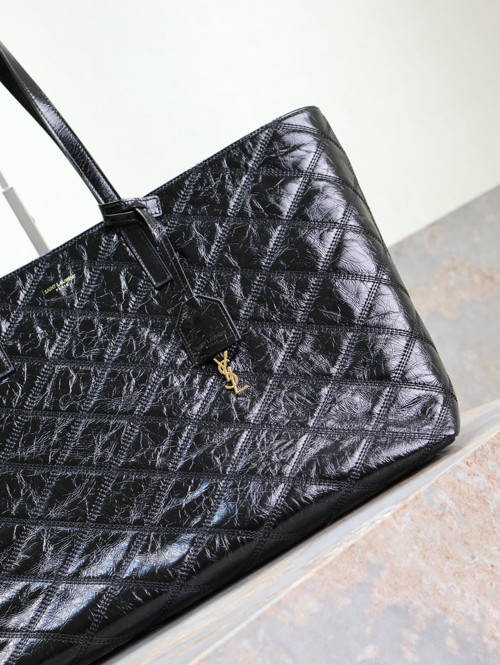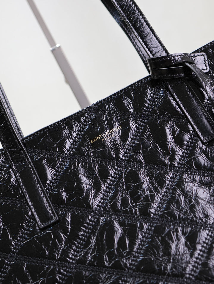 SHOPPING TOTE BAG 38 IN BLACK CRUMPLED CALFSKIN