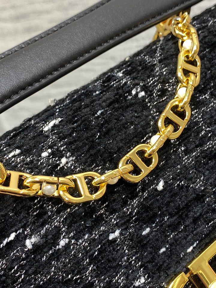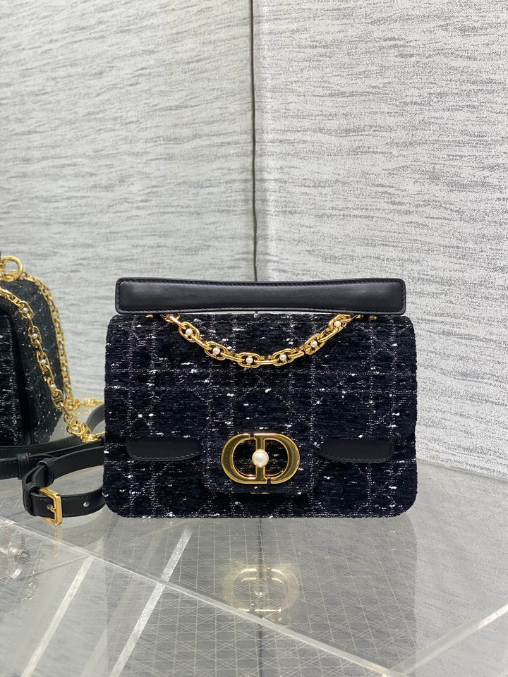 SMALL 22 JOLIE TOP HANDLE BAG IN BLACK MIX WHITE CANNAGE TWEED