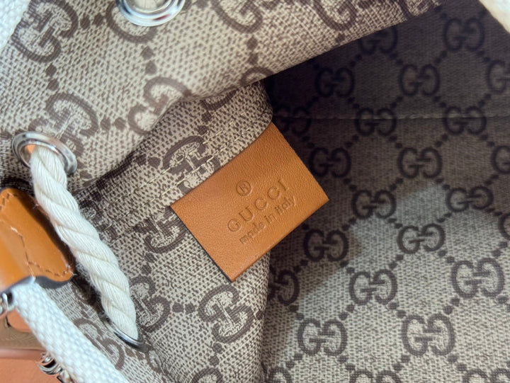 SMALL DRAWSTRING SHOULDER BAG 21 IN WHITE CANVAS BROWN CALFSKIN