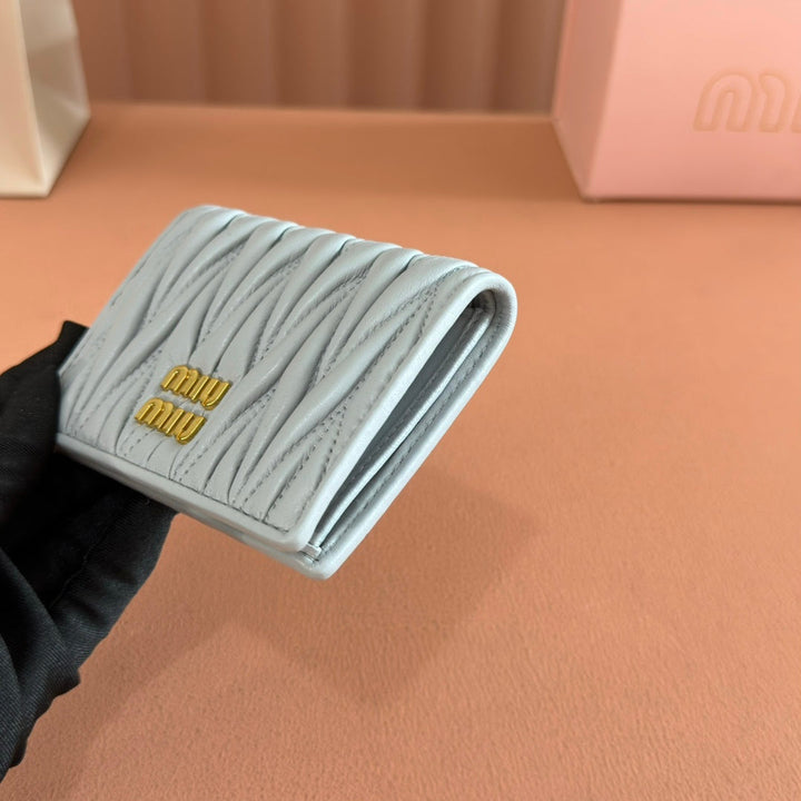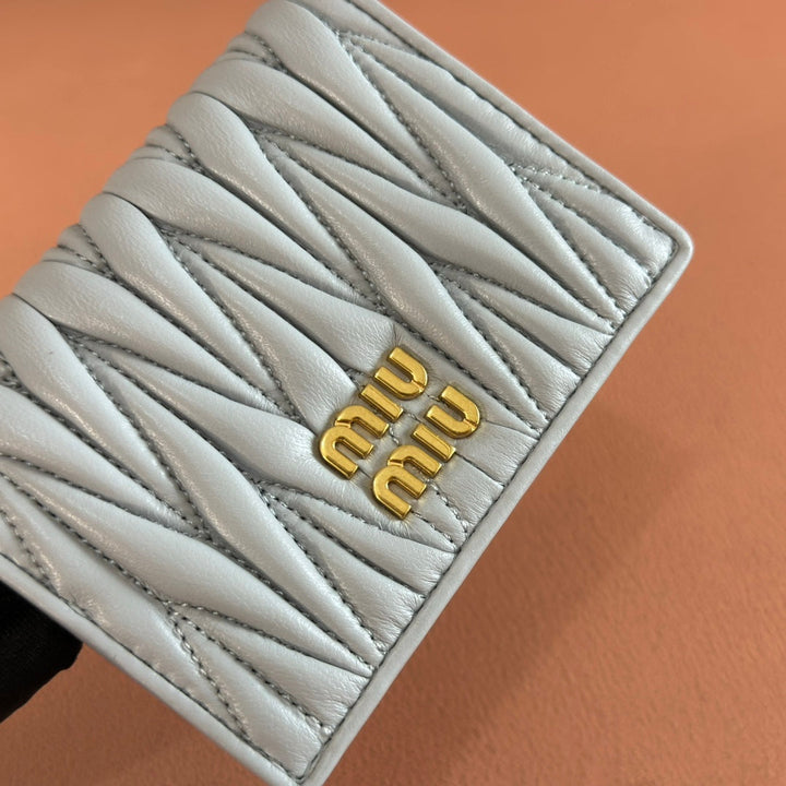 SMALL MATELASSÉ NAPPA LEATHER WALLET BLUE GRAY