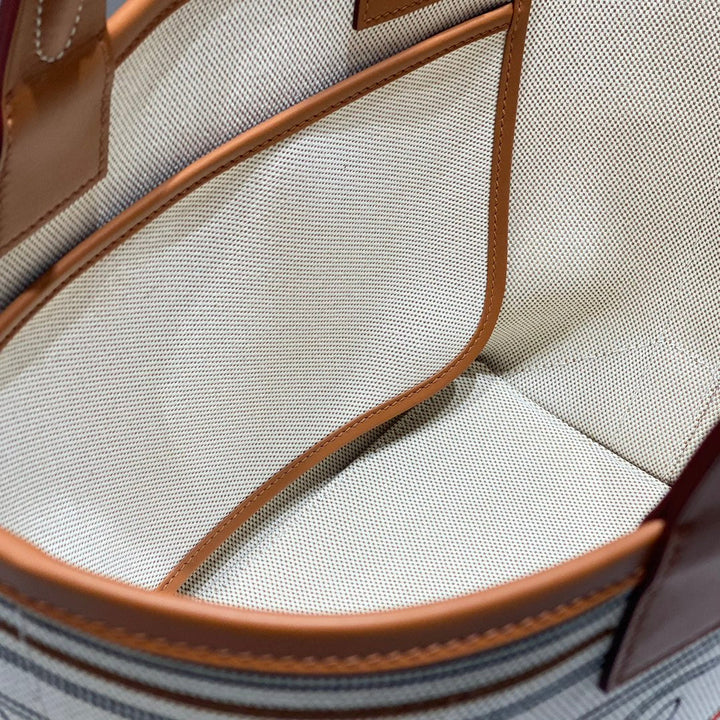 STEEPLE 28 BAG IN BEIGE CANVAS AND BROWN SWIFT LEATHER