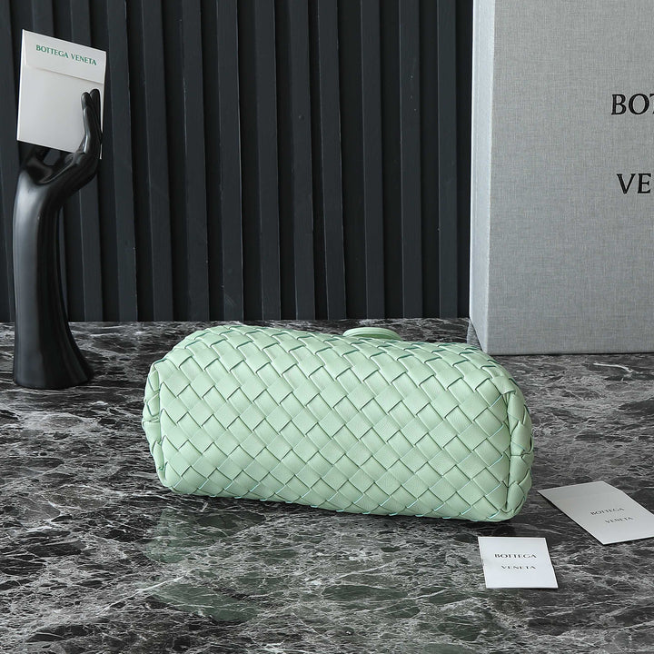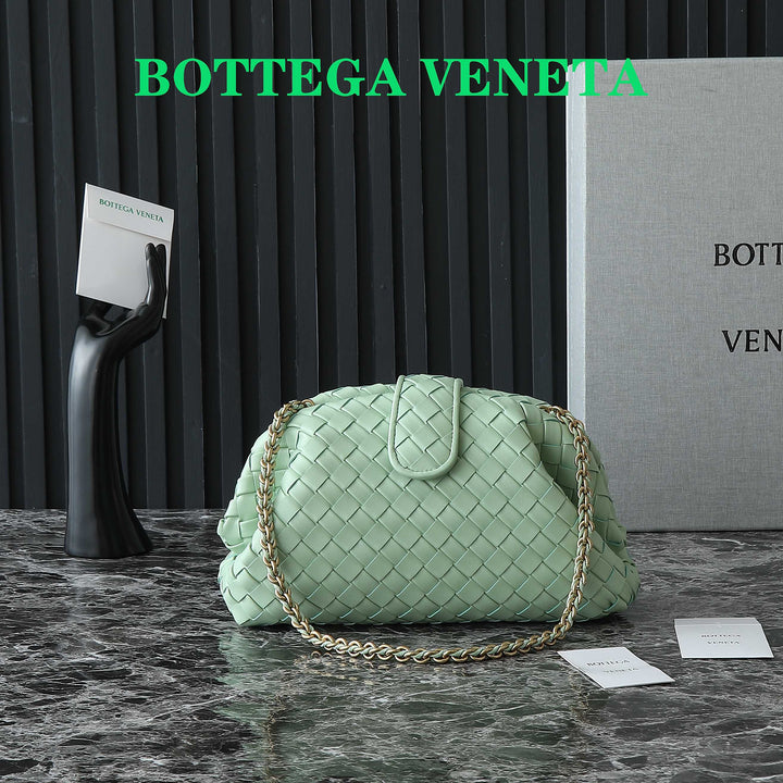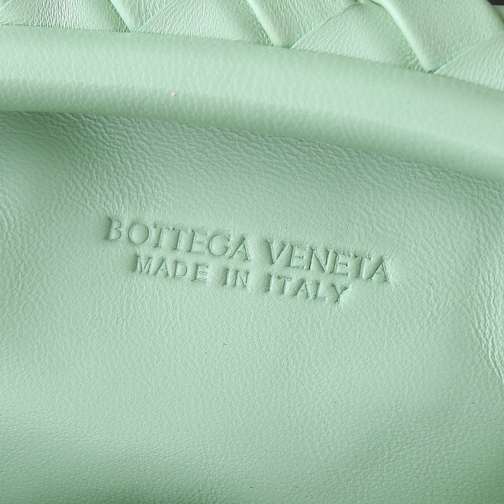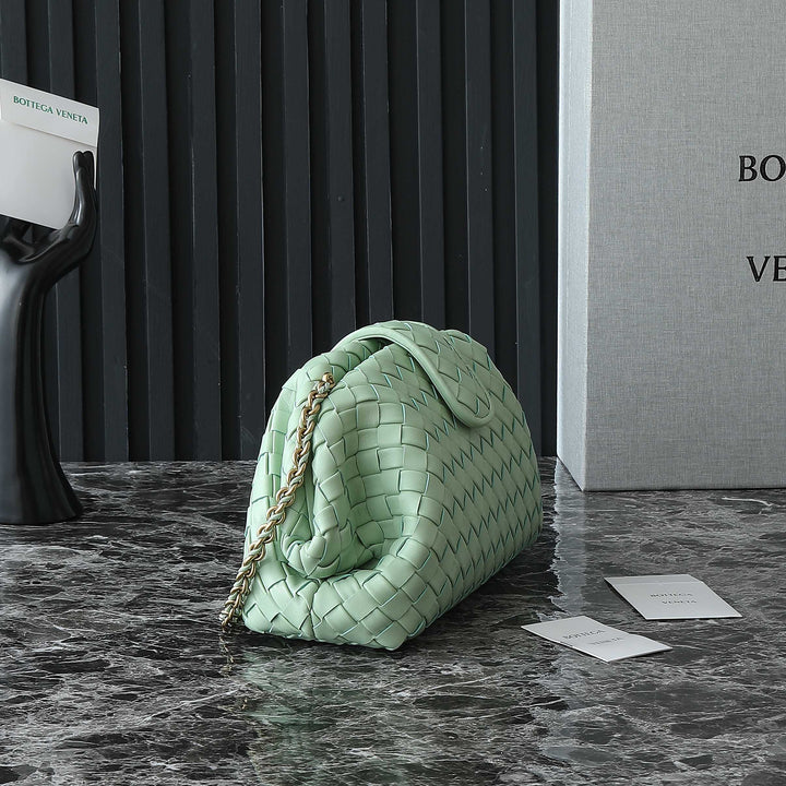 ?Padded Intrecciato leather teen clutch with leather braided metal chain
