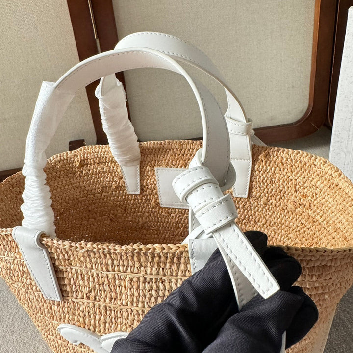 TEEN SUPPLE CELINE 22 WHITE IN RAFFIA AND CALFSKIN