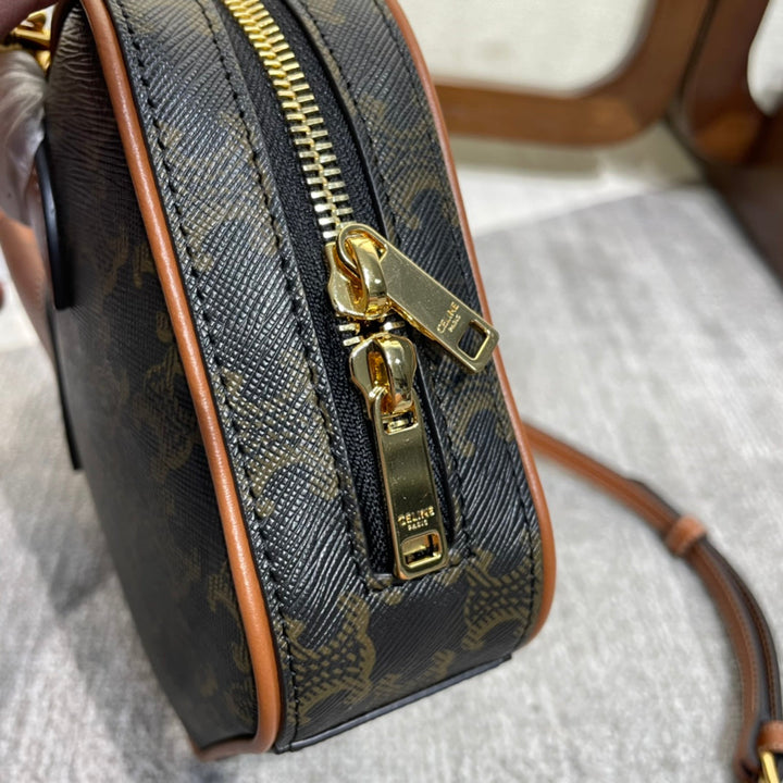 TOP HANDLE BAG 20 IN BLACK TRIOMPHE CANVAS AND BROWN CALFSKIN