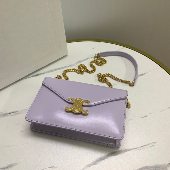WALLET ON CHAIN MARGO 19 IN LIGHT LILAC SMOOTH CALFSKIN GOLD HARDWARE