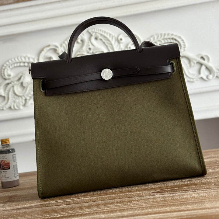 ZIP CABINE 31 BAG IN OLIVE GREEN CANVAS AND BLACK CALFSKIN